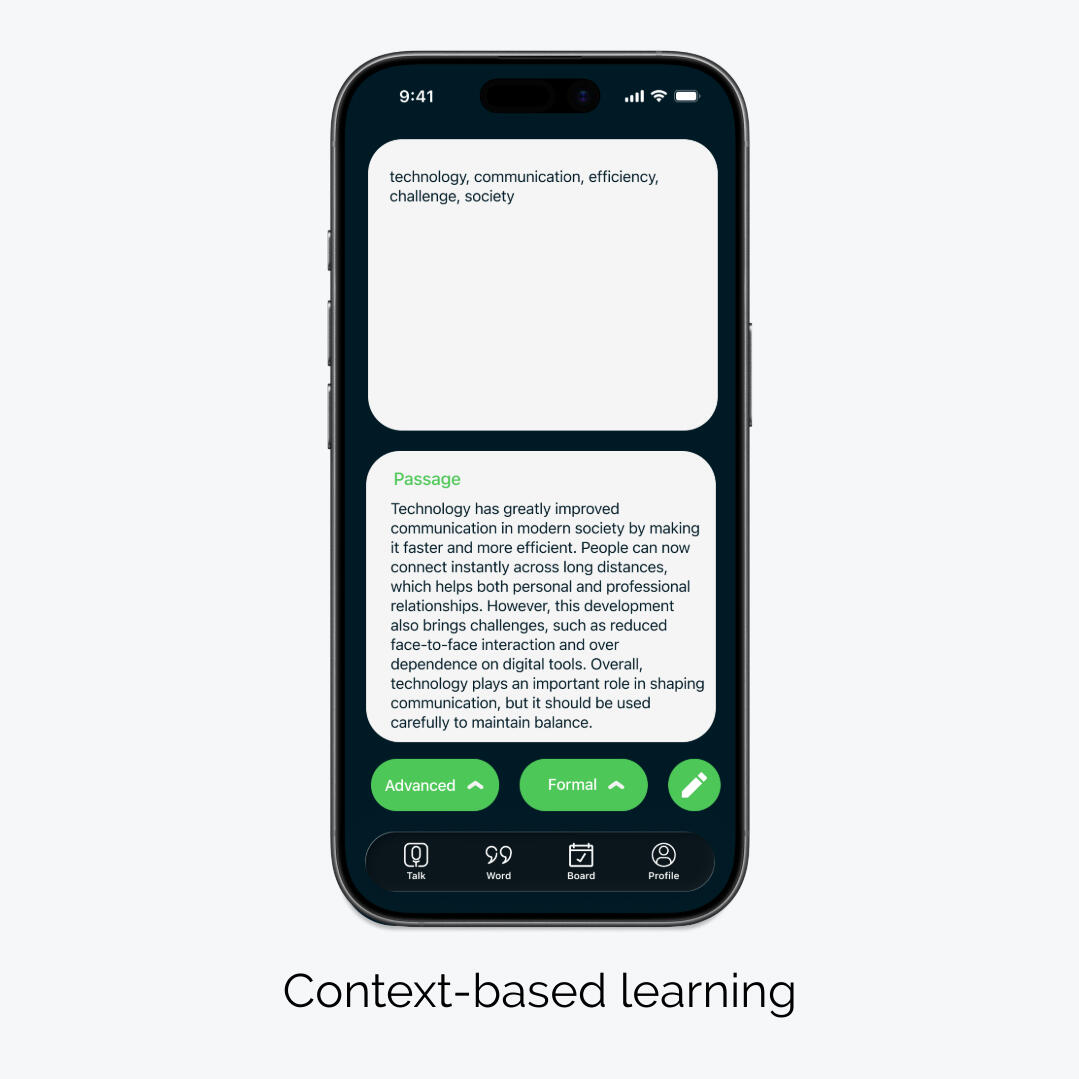 Learn vocabulary through speaking and real usage instead of isolated memorization.